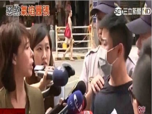 2男昨天下午1到案,面對媒體鏡頭,莊男頭抬得高高的,這時一名女記者追問,「他(店員)叫你出示證件,你是在凶什麼?不行嗎?」莊嫌則是瞪了對方一眼,另一名女記者接著問「2個打1個,這樣對嗎,人家才幾歲你這樣打人家」,第一位女記者再問「人家打工關你什麼事啊……這麼凶,誰教你的?」莊男聽到這句話忍不住又瞪了對方一眼,女記者毫不畏懼,再嗆「瞪什麼?瞪什麼?」